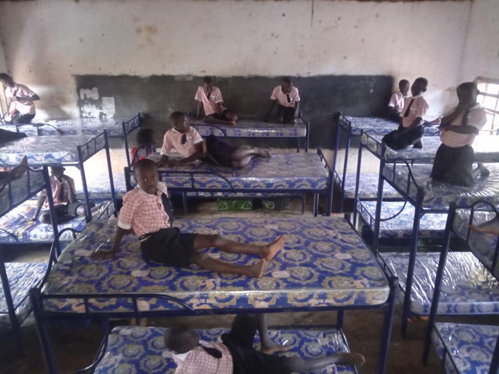 überwiegend auf dem Boden. Deshalb haben wir uns entschlossen, diesem Internat 48 doppelstöckige Betten zu finanzieren, einschließlich Matratzen.